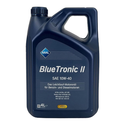 Aral BlueTronic 10W-40 este un ulei de motor cu tehnologie Aral Synth, oferă capacități bune anti-uzură și menține motoarele curate. Pentru motoare pe benzină și diesel. Îndeplinește ACEA A3/B4 • API SN • MB-Approval 229.1 • VW 501 01/ 505 00, etc,